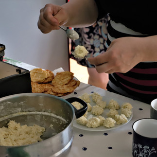 Juba eelmisel päeval küpsetasime klubiliikmete ja vabatahtlike kaasabil laadal müümiseks parajalt suure vahvlilaari – nii nn nostalgiavahvleid kui ka soolaseid vahvleid juustuga. Õhtu jooksul küpsetasime ära 6 kausitäit tainast! See oli tõeline meeskonnatöö, kus igaühel oli oma etteantud ülesanne ja kõik sujus väga professionaalsel tasemel 😊!